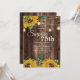 Rustic wood, yellow sunflowers with greenery, and sparkling string lights and lanterns Surprise 75th birthday party invitation for women. Contact us for help with customisation or to request matching products.