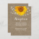 Rustic Sunflower & String Lights Burlap Reception Cards.