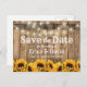 Rustic Sunflower & String Lights Save the Date Announcement Postcard