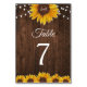 Rustic Sunflower String Lights Wedding Table Number
