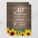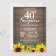 Rustic Sunflower Surprise 40th Birthday Invitation