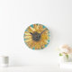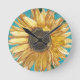 Rustic Sunflower Teal Blue Barn Wood Country Round Clock