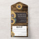 Invite guests to your upcoming wedding with a Rustic Sunflower All in One Wedding Invite. Invite design features watercolor sunflowers against a wooden rustic background. Personalise with the groom and bride's names along with the wedding date and location. Additional wedding stationery available with this design as well.