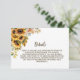 This watercolor sunflower floral wedding details enclosure card is the perfect addition to your wedding invitation suite, allowing you to provide guests with all the important information they'll need to know about your special day. With a beautiful watercolor sunflower floral design and customisable text, this enclosure card suits any wedding style. It is the perfect way to add a touch of personality to your invitations. You can include information about accommodation, reception location, wedding registry, and other important details your guests need.
