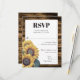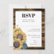 Send guests a simple and elegant Rustic Sunflower RSVP Card with your invitation. Response card design features a trio of watercolor sunflowers against a wooden rustic background. Personalise with the response date and menu choices. Additional wedding stationery available with this design as well.