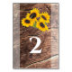 This design features rustic sunflowers on a wood backdrop. The yellow, green and brown colour tones create a rustic natural country garden feel. The opaque border highlights the sunflower centerpiece. The reverse displays the same design. Elegant wedding table number card design with modern elements. Matching wedding invitations and other stationery items are also available. Customise the number and purchase each tables number individually according to how many table numbers you need.