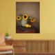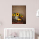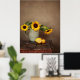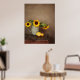 Sunny thoughts with a vintage look photo of sunflowers and lemons on a kitchen table. Tones of Vermeer and Dutch masters in a modern photographic painting style.