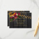 Rustic elegant stylish summer autumn fall wedding accommodation, directions, and other information enclosure card with gold typography script on dark brown barn wood featuring beautiful yellow gold sunflowers and burgundy roses with string lights. +++++++++++++ The card is suitable for rustic country floral outdoor backyard or farmhouse weddings.