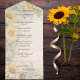 Introducing this rustic golden sunflower All-in-One wedding invitation - a radiant and elegant invitation that encompasses everything you need to set the tone for your special day, featuring a captivating rustic opaque golden sunflower design! The All-in-One wedding invitations are both beautiful and practical by combining the wedding invitation with an easy to remove perforated RSVP postcard. They are also quick and easy to prepare for mailing. Simply address the invitation, fold the back flap and seal with the included clear stickers. Once your guests receive the pre-addressed invitation they simply tear off the perforated RSVP card and drop it in the mail.