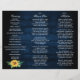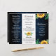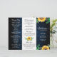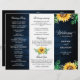 Elegant and modern rustic country tri-fold wedding program features bright yellow sunflower blossoms and baby's breath / gypsophila floral frame with leaves on navy blue barn wood background. Please find more matching designs and variations from my "blissweddingpaperie" store. And feel free to contact me for further customisation or matching items.