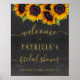 Elegant fall bridal shower stylish welcome sign poster template on dark grey chalkboard featuring a beautiful sunflowers bouquet and a trendy modern calligraphy script. Easy to personalise with your details. You can choose to customise it further changing fonts and colours of lettering.+++++++++ It is suitable for elegant summer or autumn fall rustic country garden backyard wedding shower parties.