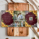Rustic Sunflowers Burgundy Wood QR Code Wedding Tri-Fold Invitation