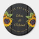 Rustic country traditional wedding save the date keepsake magnet featuring beautiful sunflower bouquets on a dark brown barn wood background. ++++++++ Ideal for a summer or autumn fall elegant outdoor garden, farmhouse barn, or backyard themed wedding. Personalise it with the bride's and groom's names, wedding date, and place!