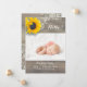 Sunflower, lace and wood rustic photo Newborn Baby Birth Announcement