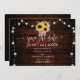 A flower pot, made of tree bark and filled with sunflowers, lavender, wheat and baby's breath make for a lovely illustration, hand-painted in digital watercolor, that decorates this rustic elegant wedding save the date that also features a red wood board background and strings of lights. Romantic and charming, it is a lovely choice for a barn wedding, an outdoor wedding, a garden wedding or any rustic setting.