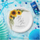 Rustic Sunflowers Script Mr. and Mrs. Wedding Paper Plate