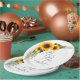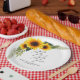 Add these personalised wedding paper plates to your celebration. The design features elegant script text "Mr. and Mrs." and is accented with a sunflower graphic. This plate is perfect for a fall country wedding reception.