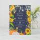 Rustic Sunflowers String Lights Pumpkin Navy Blue Invitation