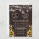Rustic Sunflowers String Lights Wood Engagement Invitation