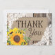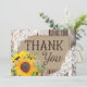 Rustic wood with white lace and sunflower bouquet thank you card.