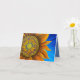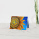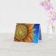 A stylized abstract depiction of a sunflower with bold sweeping lines and striking color contrasts. The sunflower itself rendered in shades of golds, yellows and oranges.