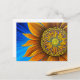 A stylized abstract depiction of a sunflower with bold sweeping lines and striking color contrasts. The sunflower itself rendered in shades of golds, yellows and oranges.