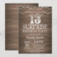 Rustic Surprise 13th Birthday Invitation with Rustic Wood Background. String Lights. Country Vintage Retro. Adult Birthday. Male Men or Women Birthday. For further customisation, please click the "Customise it" button and use our design tool to modify this template.