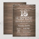 Rustic Surprise 18th Birthday Invitation with Rustic Wood Background. String Lights. Country Vintage Retro. Adult Birthday. Male Men or Women Birthday. For further customisation, please click the "Customise it" button and use our design tool to modify this template.
