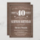Rustic Surprise 40th Birthday Invitation. White Typography. Rustic Wood Background. Adult Birthday. Male Men or Women Birthday. Kids Boy or Girl Lady Teen Teenage Bday Invite. 13th 15th 16th 18th 20th 21st 30th 40th 50th 60th 70th 80th 90th 100th. Any Age. For further customisation, please click the "Customise it" button and use our design tool to modify this template.