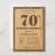 Rustic Surprise 70th Birthday Invitation with Rustic Wood Background. Vintage Retro Country. Adult Birthday. Male Men or Women Birthday. Kids Boy or Girl Lady Teen Teenage Bday Invite. 13th 15th 16th 18th 20th 21st 30th 40th 50th 60th 70th 80th 90th 100th. Any Age. For further customisation, please click the "Customise it" button and use our design tool to modify this template.