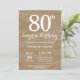 Rustic Surprise 80th Birthday Invitation. Rustic Wood Background. Vintage Retro Birthday. Adult Birthday. Men or Women Bday Invite. 13th 15th 16th 18th 20th 21st 30th 40th 50th 60th 70th 80th 90th 100th, Any age. For further customisation, please click the "Customise it" button and use our design tool to modify this template.