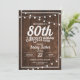This rustic 80th surprise birthday invitation features string lights on a dark wood background. Click the customise button for more flexibility in modifying the text! Variations of this design, additional colours, as well as coordinating products are available in our shop, zazzle.com/doodlelulu*. Contact us if you need this design applied to a specific product to create your own unique matching item! Thank you so much for viewing a DoodleLulu by 2 june bugs design!