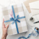 A rustic buffalo check pattern in tan and white makes a classic wrapping paper to wrap a special gift for any occasion.