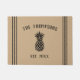 Welcome guests to your abode with this charming rustic farmhouse style doormat. Personalised design features your family name or farm name in rich black lettering, along with your year established and a pineapple illustration. Rope stripe detailing on a classic tan background completes the design.