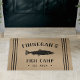 Welcome guests to your fishing cabin, fish camp, or riverside abode with this charming rustic doormat. Personalized fishing themed design features your name or family name in black lettering, along with your year established and a fish illustration. Rope stripe detailing on a classic tan background completes the design.