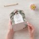 ALSO AVAILABLE WITH A QR CODE TO SCAN. This design features a rustic green pine and pinecone bouquet on a soft tan beige background with white flowers. It is accented with a white sparkle overlay to illustrate the magic of the beautiful winter holidays. Perfect for a Christmas or winter wedding. Personalised All-In-One invitations are a unique combination of both a beautifully printed custom invitation with an easy to tear off perforated RSVP postcard. And they are so easy to use! You simply fold, then seal the back flap with the three included clear stickers, and mail. And when your guests receive your custom invite, they just tear the perforated RSVP Card off and drop it back in the mail to you!