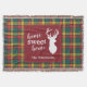 Cute home sweet home Christmas movie watching blanket you can easily customise by clicking the "Personalise" button, Featuring and deer silhouette and clan Buchanan tartan in green, yellow, and red check.