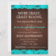 Rustic teal blue and brown country wedding invitation. We're crazy Crazy in love rustic country brown and teal blue wedding invitations are easily customised for your event.