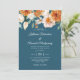 Rustic Teal Blue Burnt Orange Floral Fall Wedding Invitation.