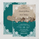 Rustic Teal Burlap Lace String Lights Wedding Invitation