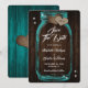 Rustic teal wedding save the date card featuring a mason jar and burlap hearts against a barn wood background adorned with twinkle lights. Easily personalise this cute rustic teal wedding save the date online. Matching items available to complement this teal wedding save the date.