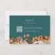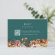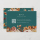 Rustic Teal RSVP Card. Make guest replies easy and on-theme with this RSVP card featuring a scannable QR code. Designed as part of the Teal Terracotta Fall Leaves Floral Collection, it pairs functionality with seasonal style through warm watercolor florals—burnt orange and terracotta leaves, beige dahlias, and copper-toned roses—on a deep teal background. It’s a perfect modern touch that keeps your suite cohesive. Personalise your details and simplify your guest list in style.