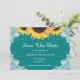 Rustic Teal Sunflower Lace Wedding Save The Date