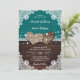 These romantic rustic wedding invitations inspired by burlap hearts on a rustic wood, burlap and lace background are perfect for inviting your guests to your teal rustic country/backyard/barn wedding party.