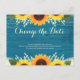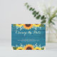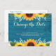 Rustic Teal Wood Sunflower Wedding Change the Date Postcard
