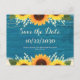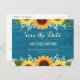 Rustic Teal Wood Sunflower Wedding Save the Date Postcard