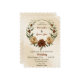 Unique wedding invitation featuring romantic rustic terracotta flowers and green leaves.