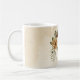 Unique coffee mug featuring romantic rustic terracotta flowers and green leaves.