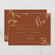 Rustic Terracotta GOLD Leaves Overlay Wedding RSVP Postcard