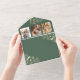 Capture the beauty of autumn with this rustic terracotta and olive green all-in-one wedding invitation. Adorned with elegant golden floral accents, a photo insert, and a convenient eco-friendly design that doubles as an envelope, this invitation is perfect for fall weddings. Customise it with your details for a unique keepsake.